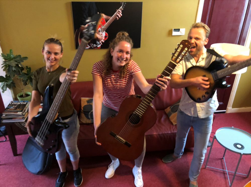 Heb je geen gitaar, dan kun je voor deze week een akoestisch gitaar huren voor € 10,00. Er zijn geen elektrisch gitaren te huur.
